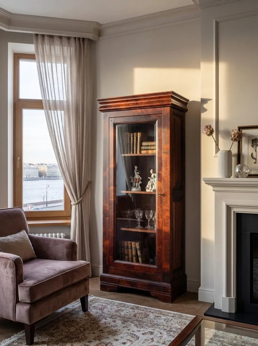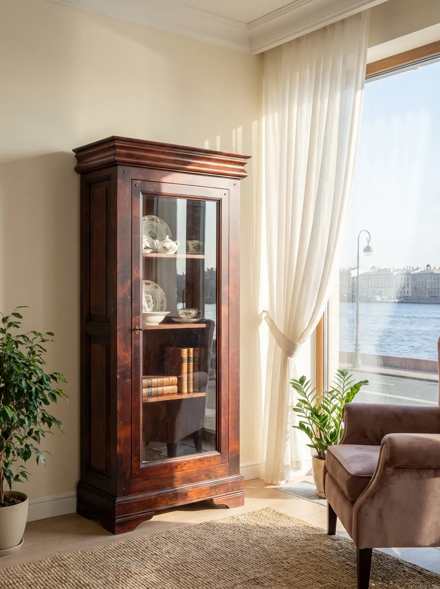 Шкаф 1 дверный Луи Филипп с витриной, массив ОВ 01 (ручка слева)