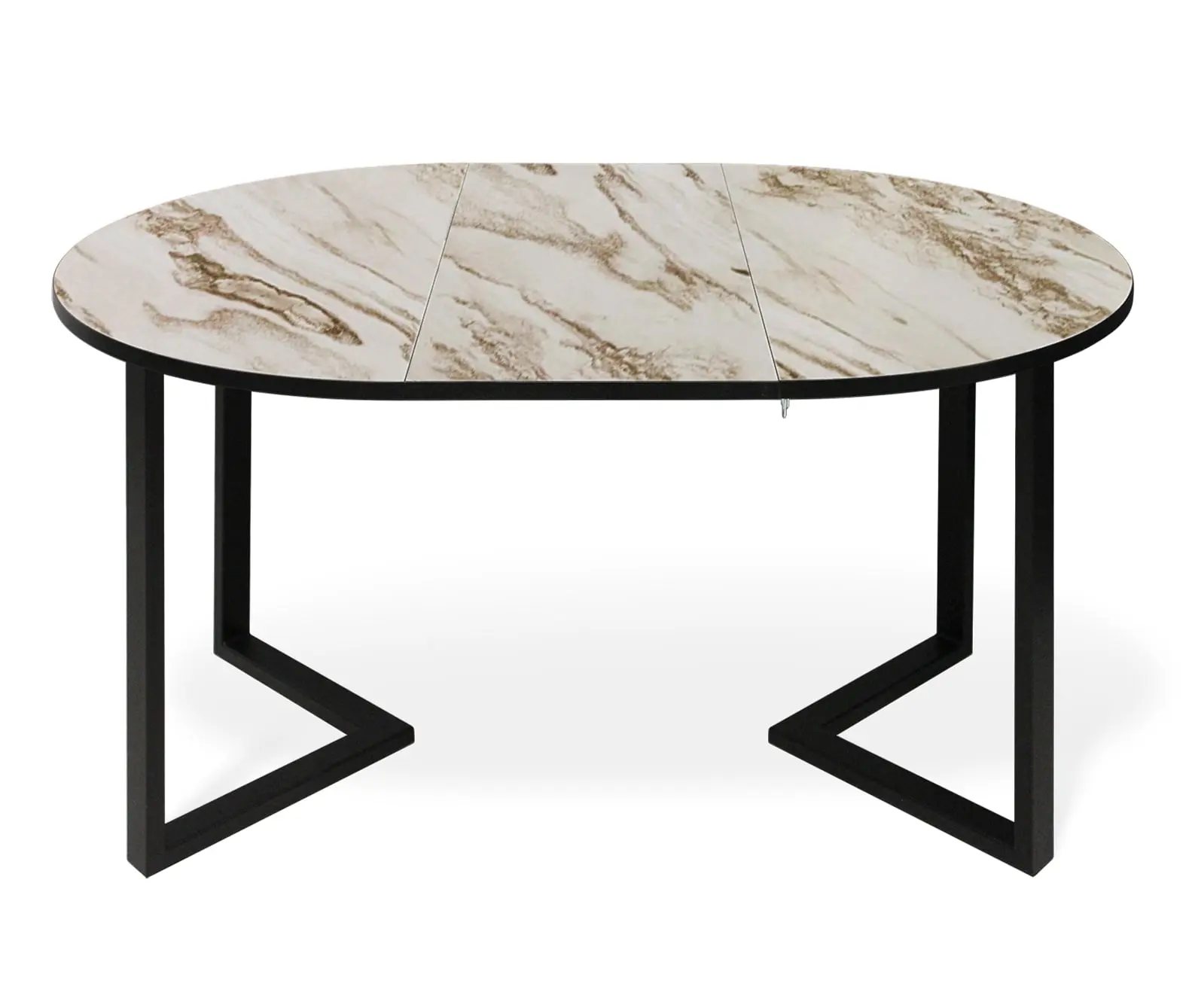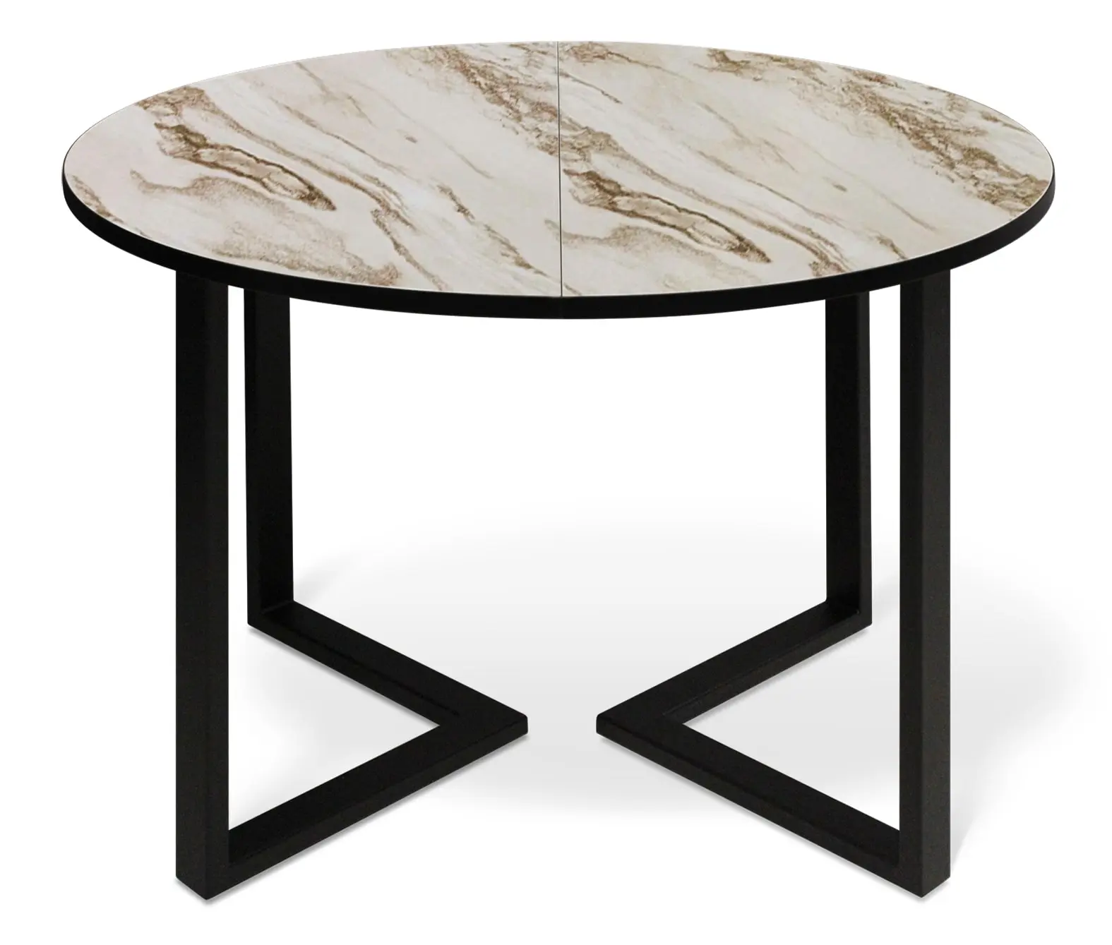 Необычный дизайн ножек не только добавляет в интерьер ломаных линий, но и позволяет сэкономить пространство для ног. Выпуклый рисунок натурального камня на столешнице отлично дополнит классический интерьер обеденной зоны.