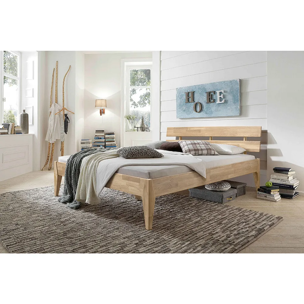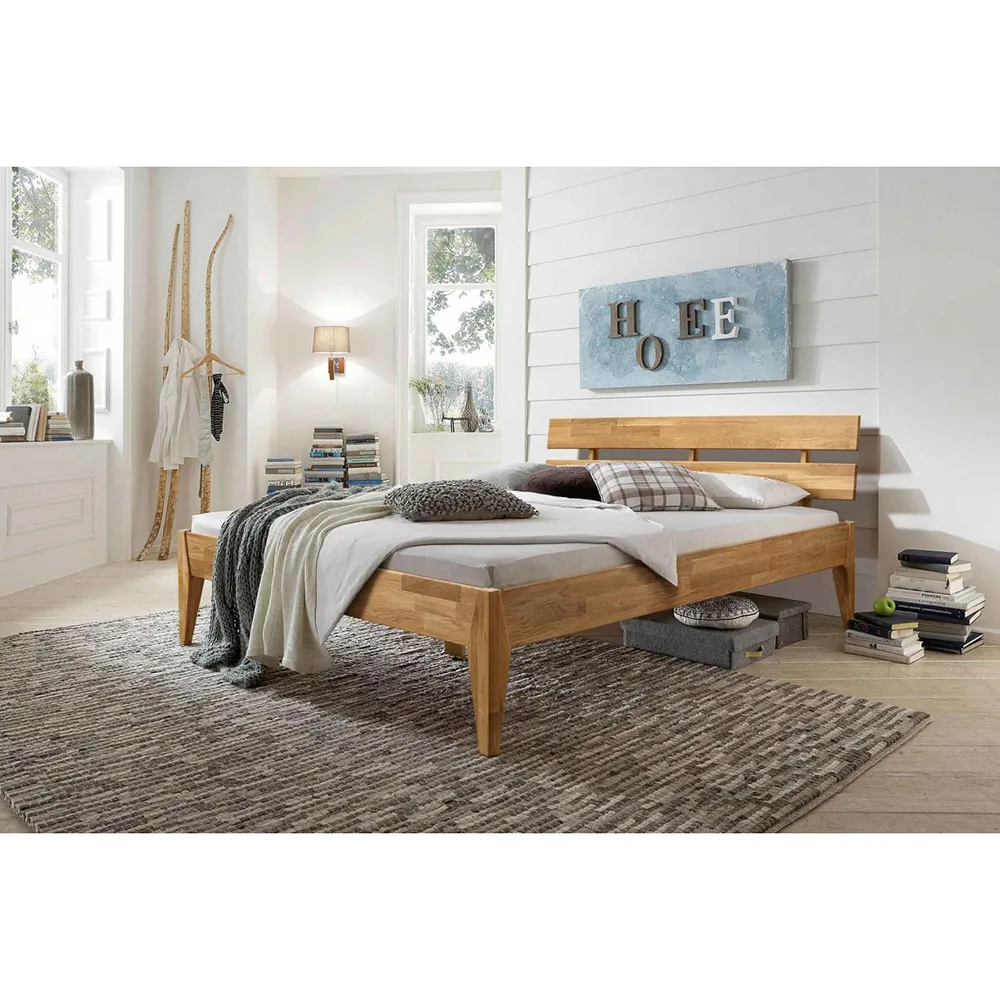 Двуспальная кровать «Эльке» — это идеальное сочетание стиля, комфорта и надёжности. Каркас кровати изготовлен из натурального дерева – массива дуба. Одна из особенностей кровати – высокие изящные ножки. Из шести вариантов отделки можно выбрать тот, который лучше всего подойдёт к вашему интерьеру.