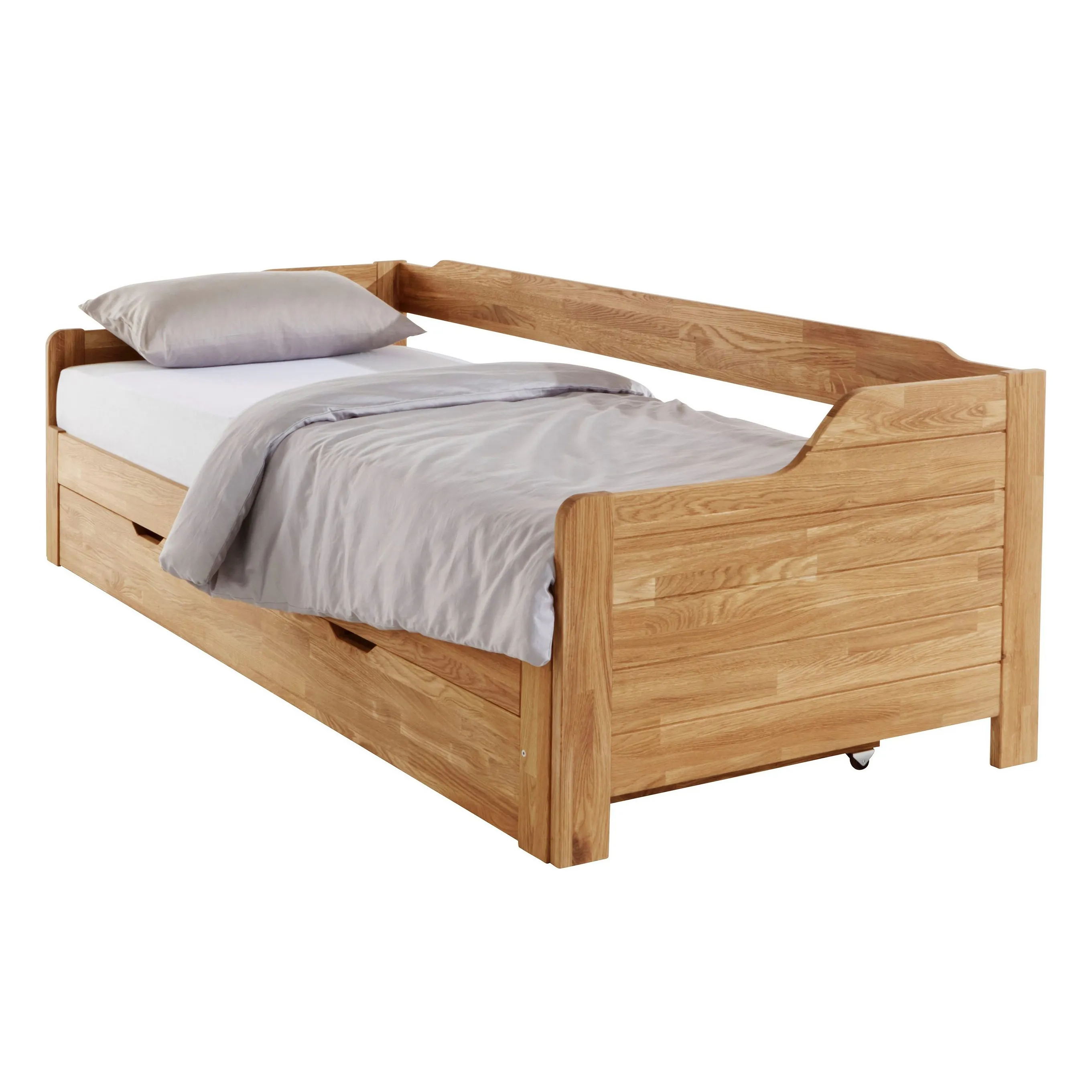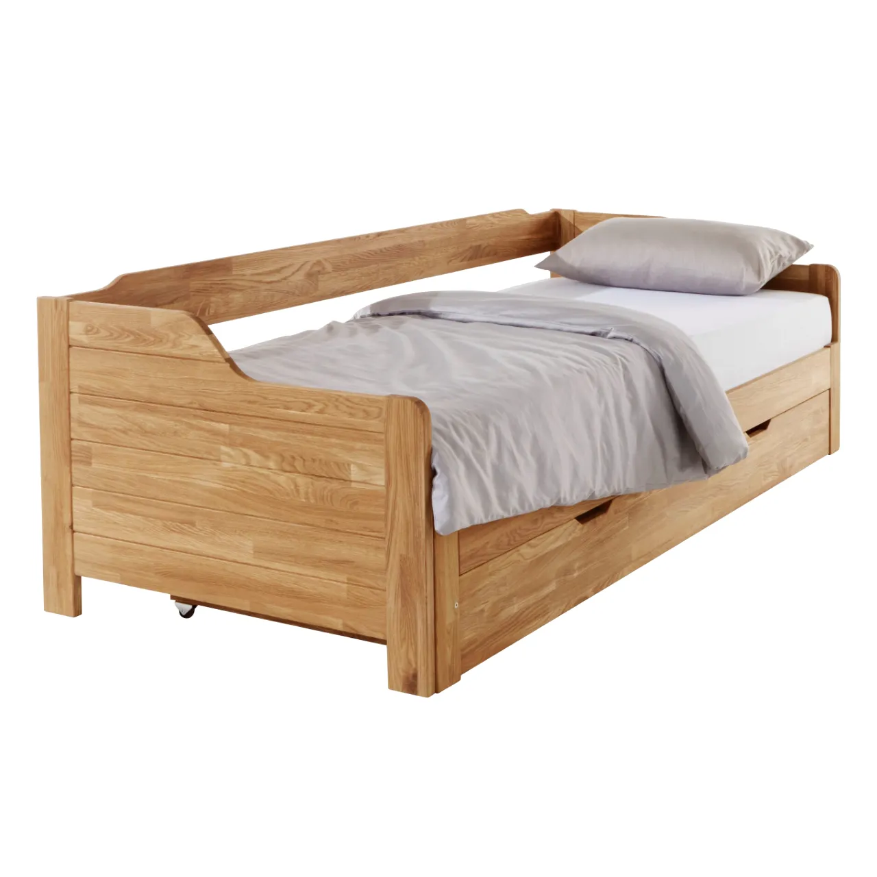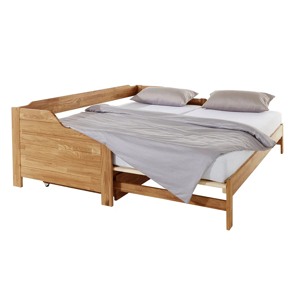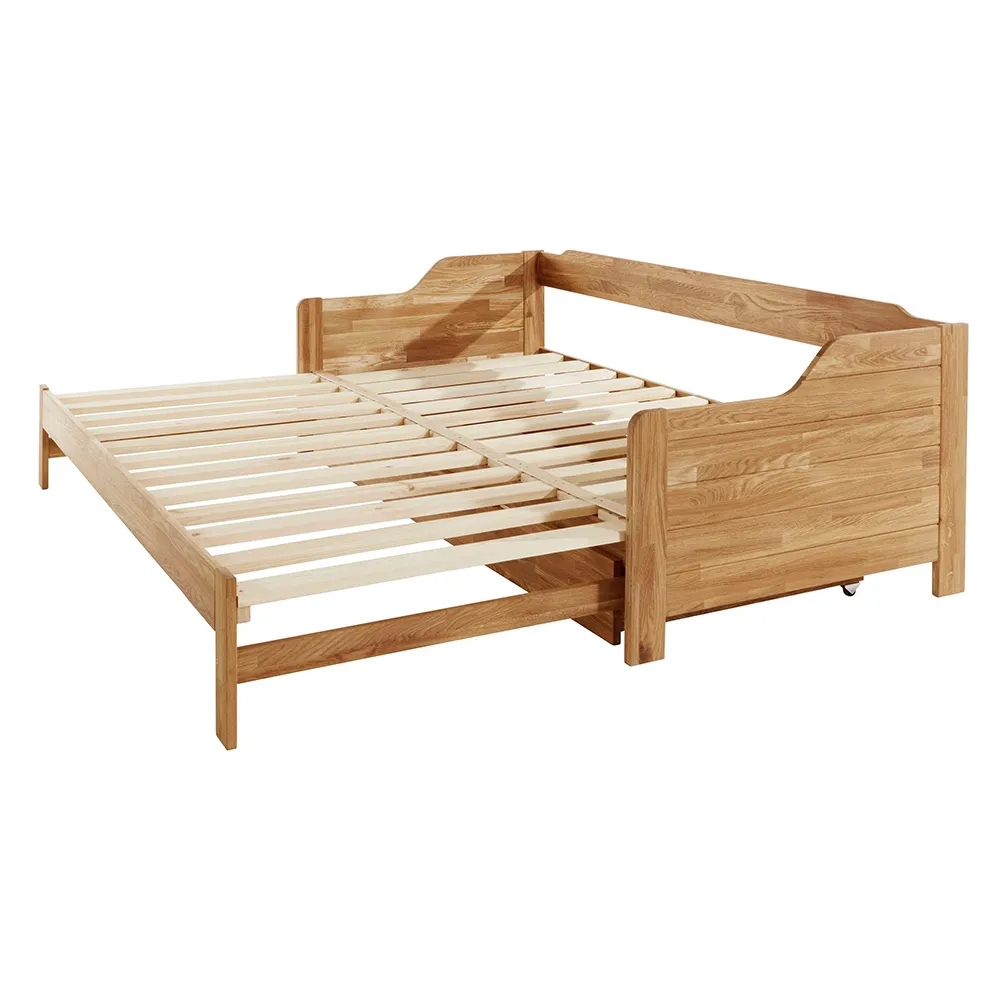 Кровать имеет механизм раскладывания и легко превращается в двуспальную. В комплект входит большой бельевой ящик на роликах. Реечное основание также поставляется с кроватью. Габариты изделия 900х2050х675 мм, размер спального места — 900х2000 мм. Изделие поставляется в разобранном виде, в 3 упаковках. Прилагается инструкция по сборке, но мы рекомендуем воспользоваться услугами профессиональных сборщиков мебели.