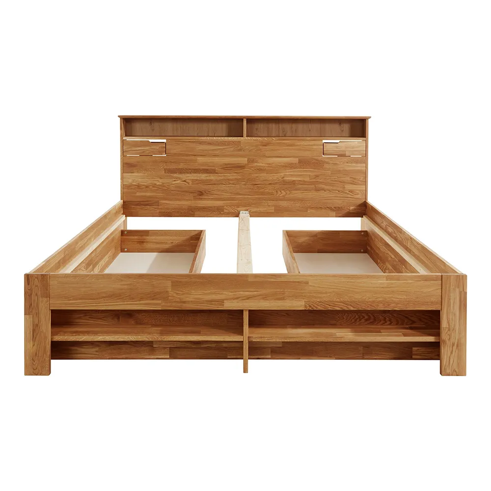 Двуспальная кровать «Далия» — это идеальное сочетание стиля, комфорта и надёжности. Каркас кровати изготовлен из натурального дерева – массива дуба. Из шести вариантов отделки можно выбрать тот, который лучше всего подойдёт к вашему интерьеру.