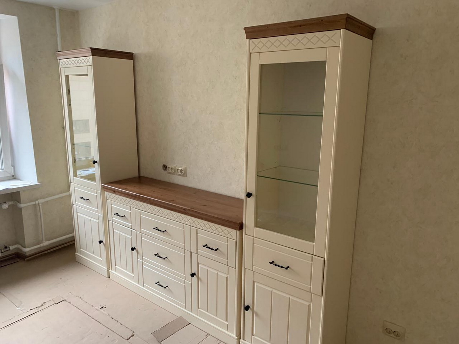 Цвет серванта на титульной фотографии - скандик белый/скандик - крышка. Стоимость зависит от выбранного покрытия. При заказе мебели в составном цвете цена считается по более дорогому.