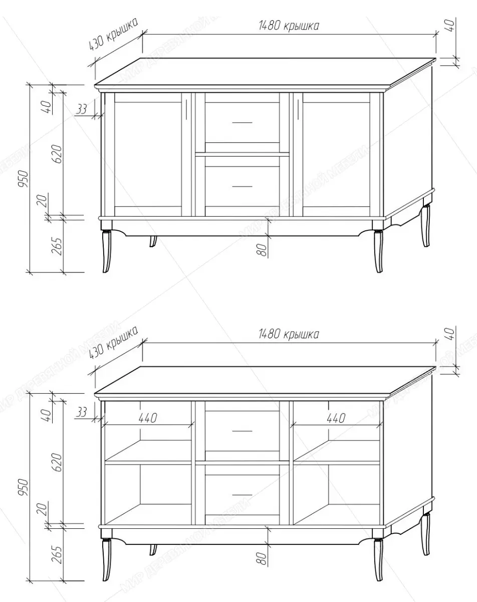• Выдвижные ящики выполнены из фанеры, не окрашены в цвет изделия.