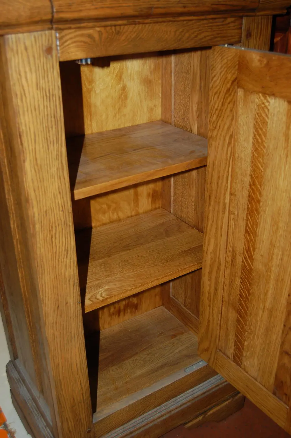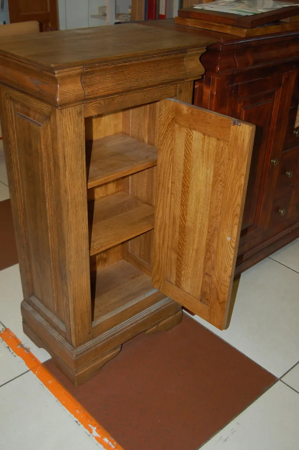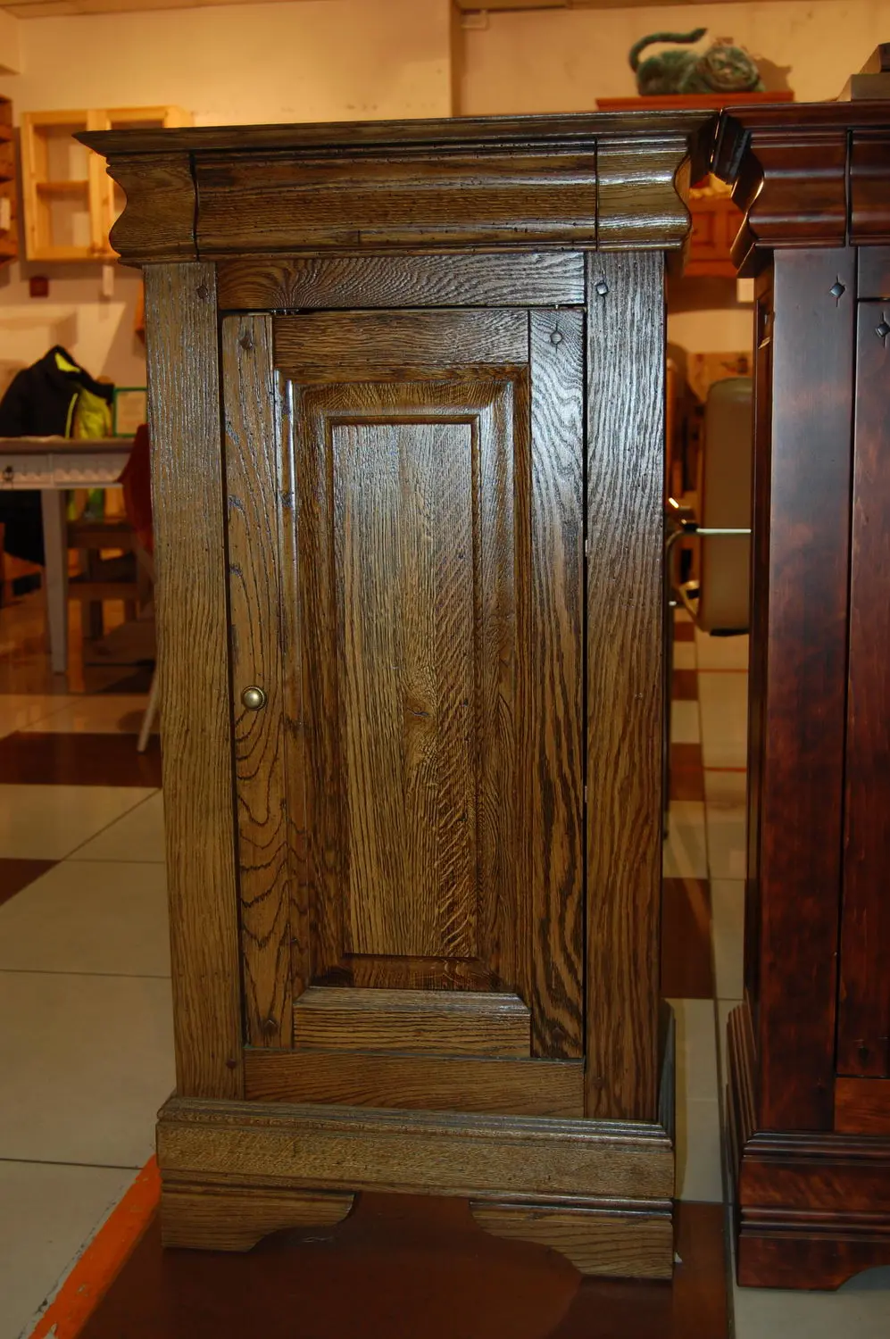 Однодверный комод «Луи Филипп ОВ 04» выполнен в классическом стиле, изготавливается из массива ольхи или дуба и может быть окрашен в любой цвет по RAL, на выбор. Комод имеет высокий рельефный карниз и низкие устойчивые ножки.