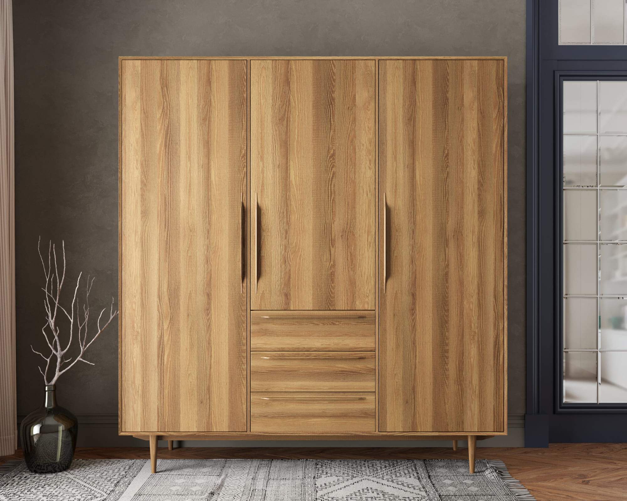 Трехстворчатый шкаф "Bruni" определенно станет главным функциональным предметом Вашей спальной зоны, неся в себе лаконичность, стиль и практичность и будет прекрасным дополнением в спальне в скандинавском стиле.