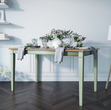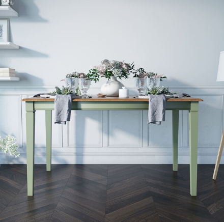 Оливковый обеденный стол "Olivia" из одноименной коллекции выглядит стильно и лаконично.