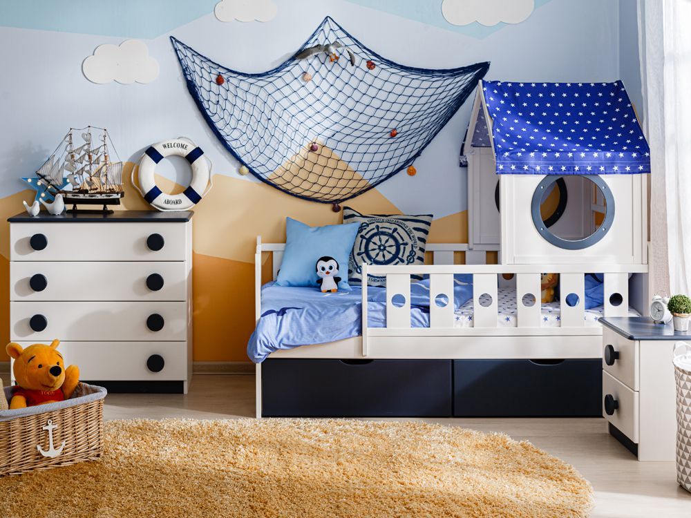 Кровати, комоды, стеллажи и другие предметы для детских комнат из массива сосны, МДФ, ЛДСП, пластика. Изделия окрашиваются в приятные светлые цвета. Есть мебель с игровыми элементами, например, кровати-домики, стулья-слоники и другие. В ассортименте представлена и так называемая «растущая мебель»: высоту столов и стульев можно менять по мере роста ребенка.