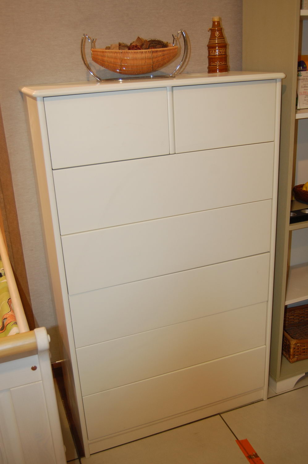 Классический комод 7 ящиков из массива сосны. Максимальная нагрузка на направляющие - 20 кг. Ручки "грибок" в комплекте. Комод в лаке - складская программа.