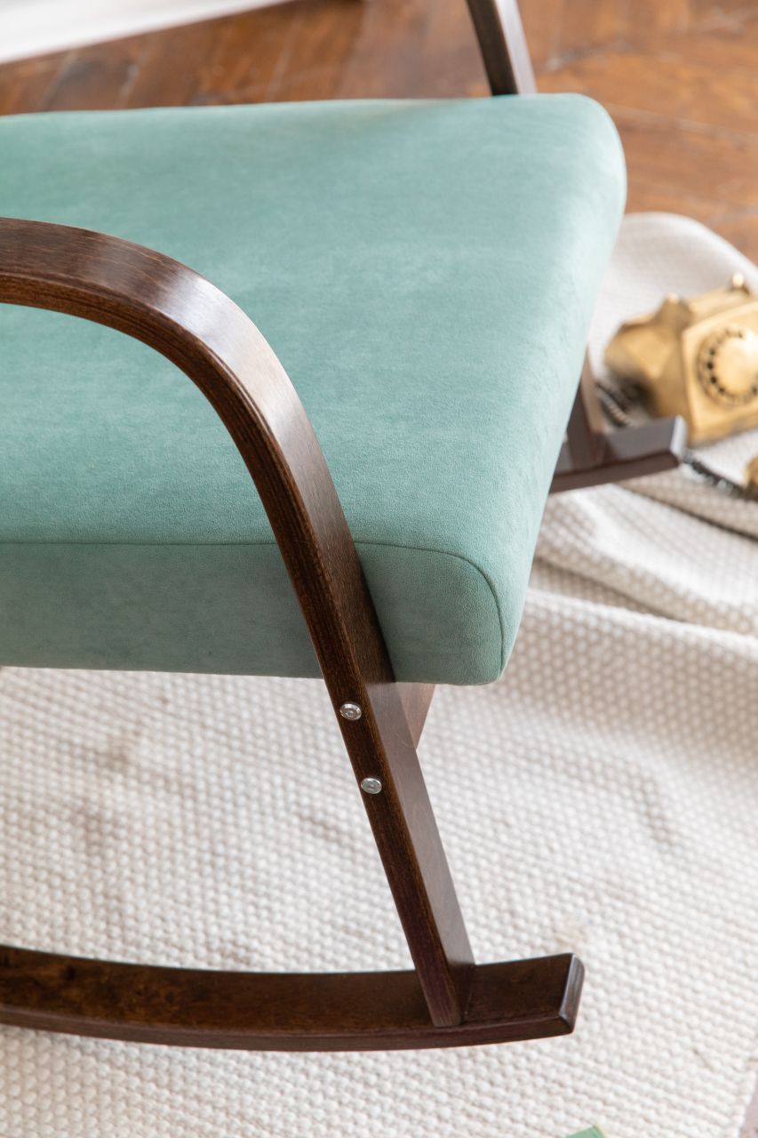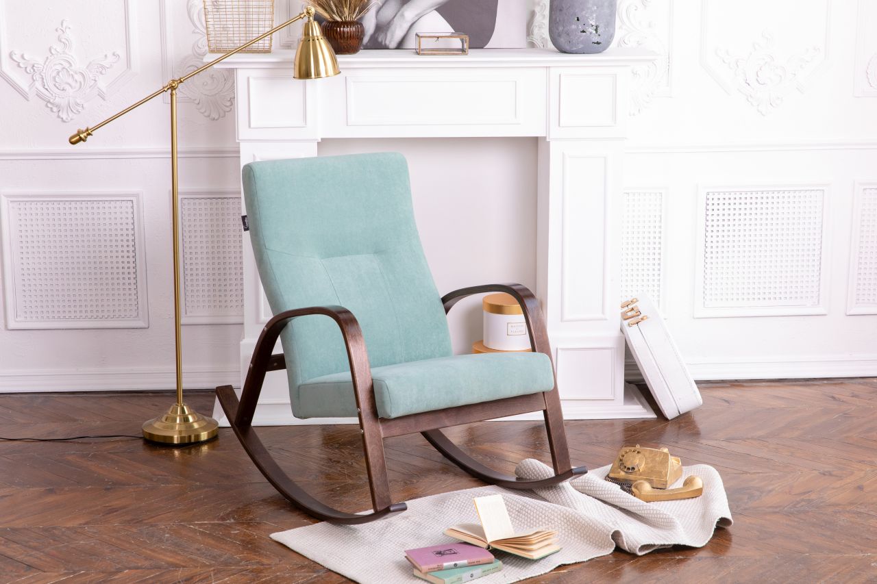 Кресло-качалка с тканевой обивкой цвета Минт и каркасом цвета Орех